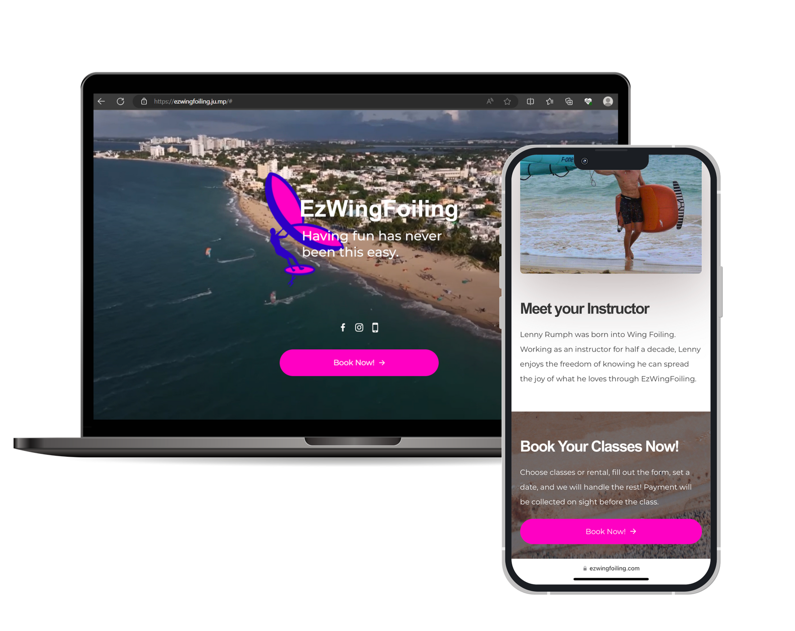 EzWingFoiling is a local business spreading the joy of wing foiling by offering courses and wing foiling equipment for rent. Stackz was able to successfully deploy a one-pager website where clients could book classes with wing foiling instructors. Integrating the instructor's calendars with their client's calendars through one platform provided by Stackz.